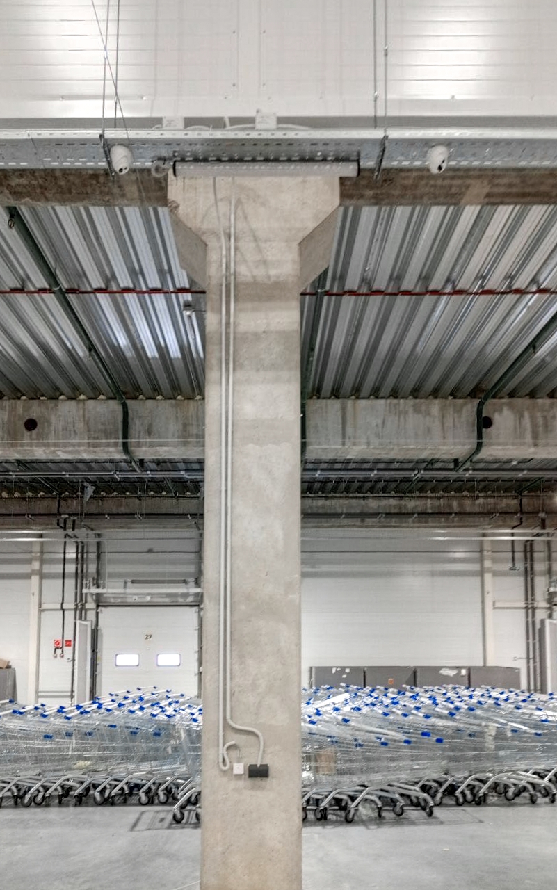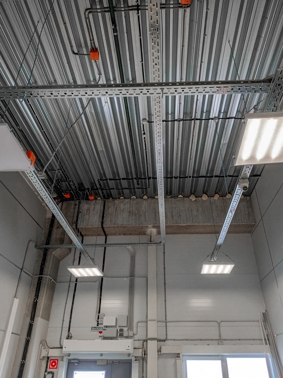 В основном блоке сотрудники нашей компании выполнили полный комплекс электромонтажных работ: от установки кабельных конструкций до организации освещения рабочих мест и монтажа постов зарядки. Важной задачей стало подключение трёх сортировочных линий (сортеров), от бесперебойной работы которых зависит логистика всего центра. Параллельно велось оснащение АБК: монтаж освещения в кабинетах, установка розеток и выключателей, а также сборка и расключение многочисленных электрических щитов.