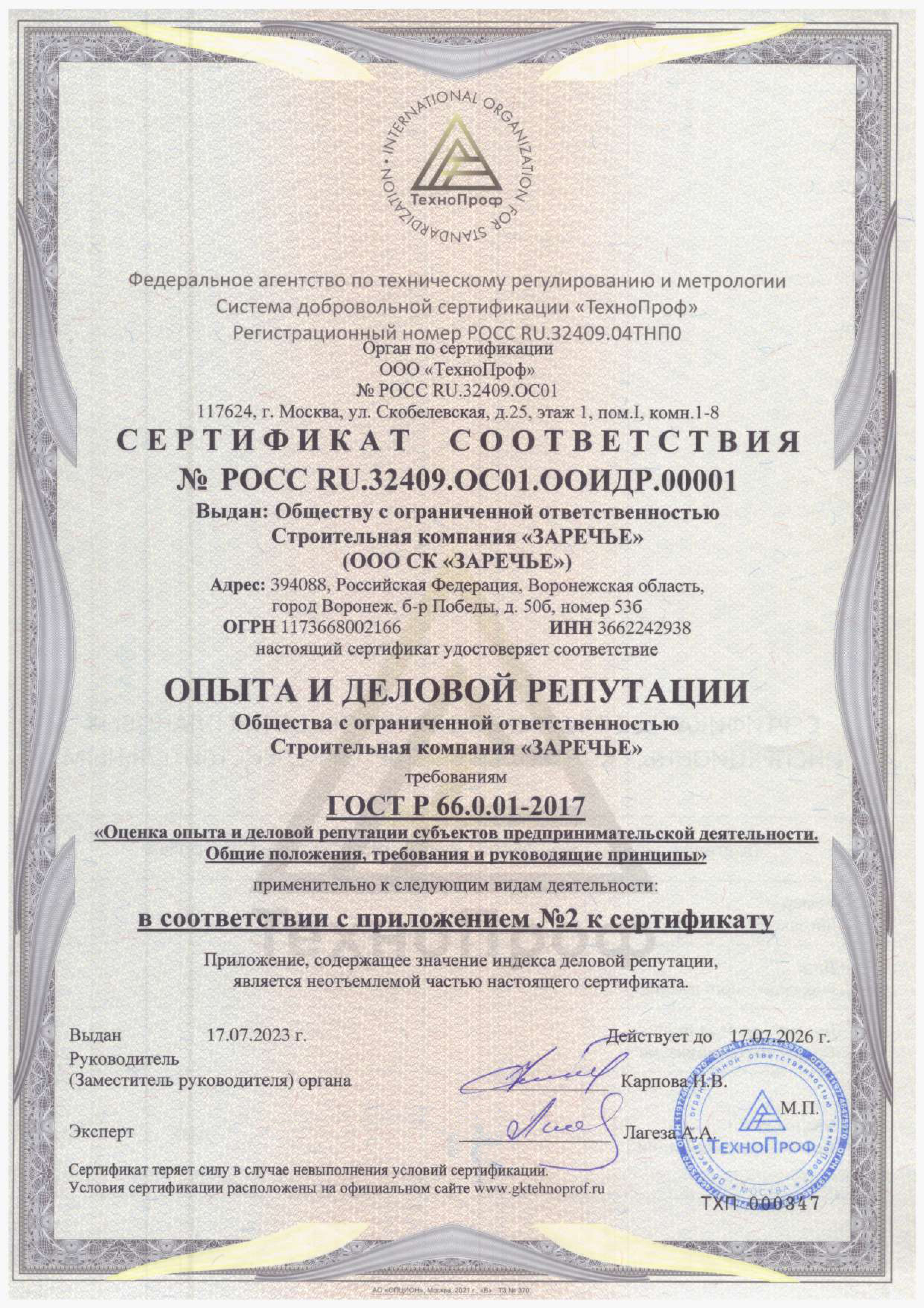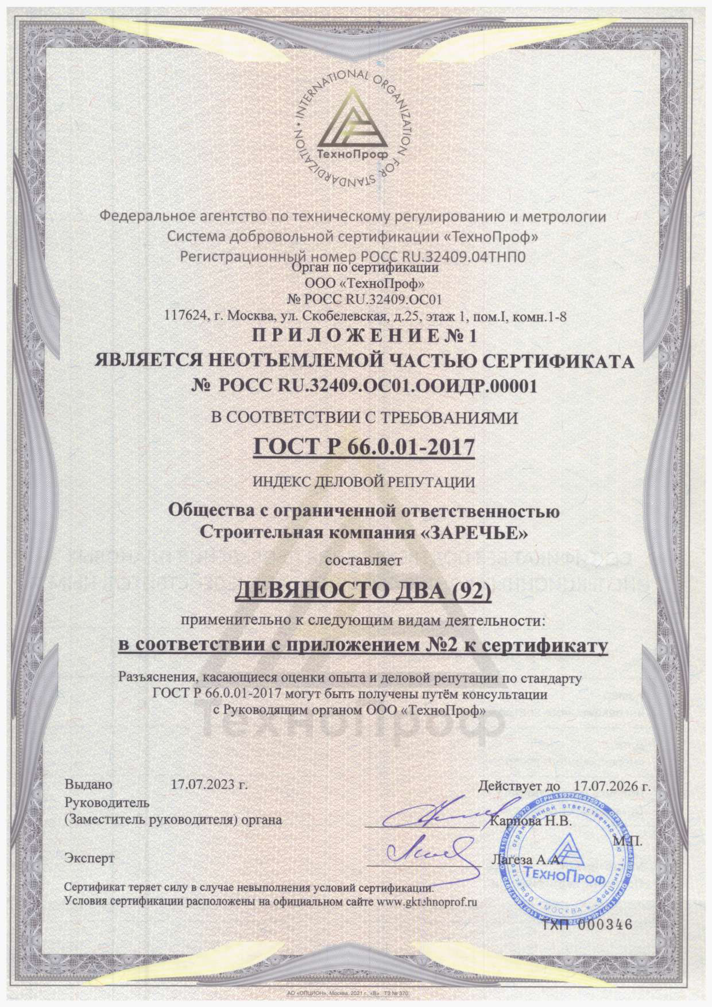 Ключевой элемент успеха любой компании — ее деловая репутация. Рады сообщить, что 17 июля СК «Заречье» получила сертификат соответствия опыта и деловой репутации, подтверждающий высокий уровень профессионализма и надежности нашей компании. Стоит отметить, что индекс деловой репутации СК «Заречье» составляет 92 балла из 100 возможных, что является впечатляющим показателем.