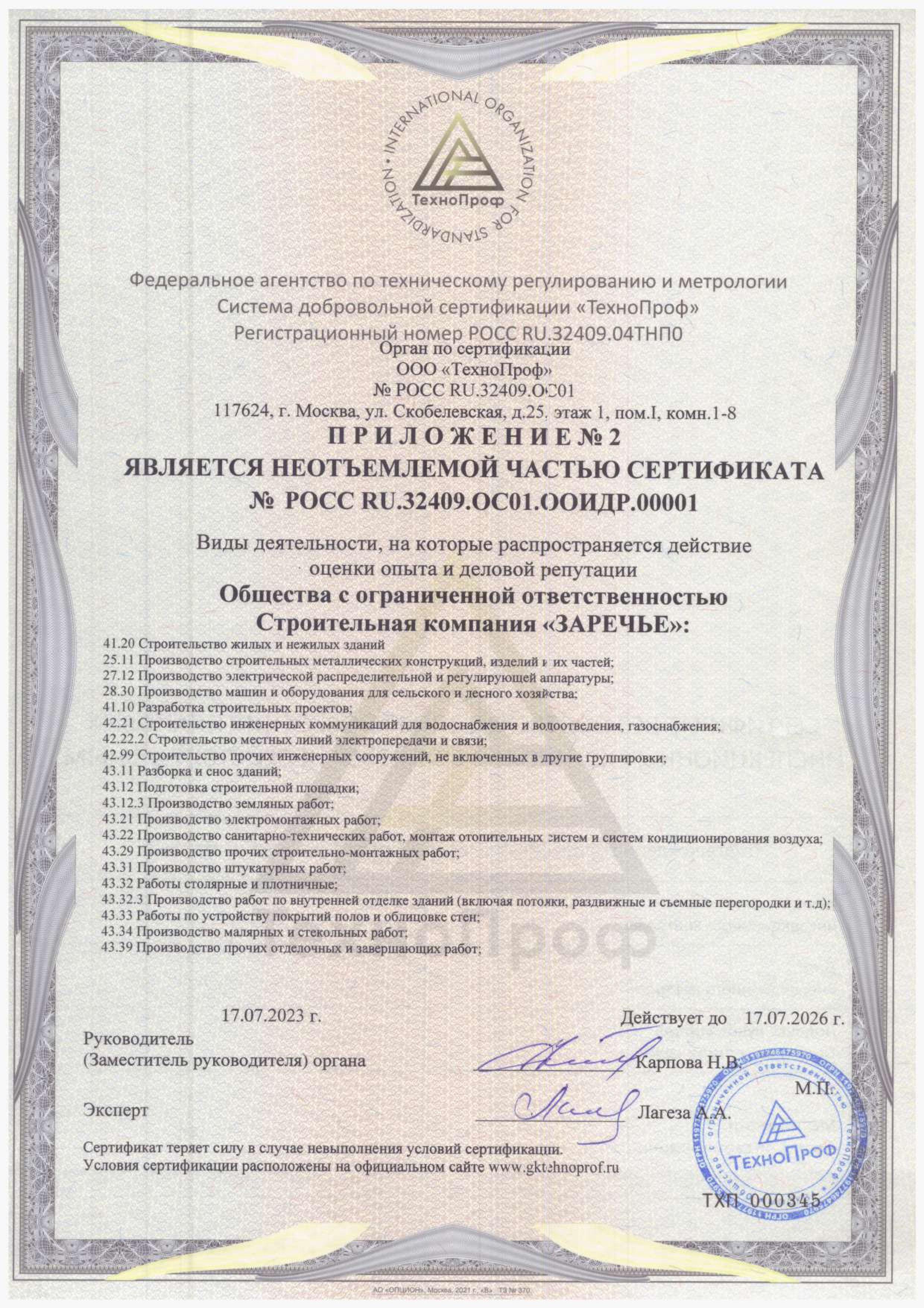Мы выражаем признательность сертифицирующему органу ООО «ТехноПроф» за их профессиональную и оперативную работу по всесторонней оценке нашей компании.